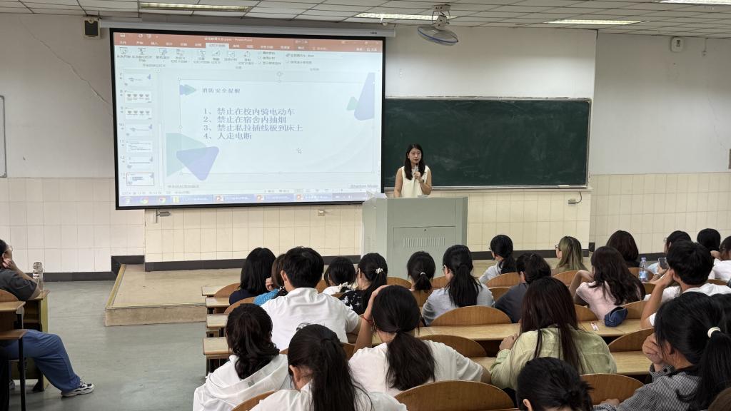 2024级辅导员汪正围绕校园日常管理、防范电信诈骗、学业预警机制等内容展开讲解,引导学生合理安排大二学习生活,积极参与实践锻炼与校园文化项目,增强自我管理能力,夯实专业基础。