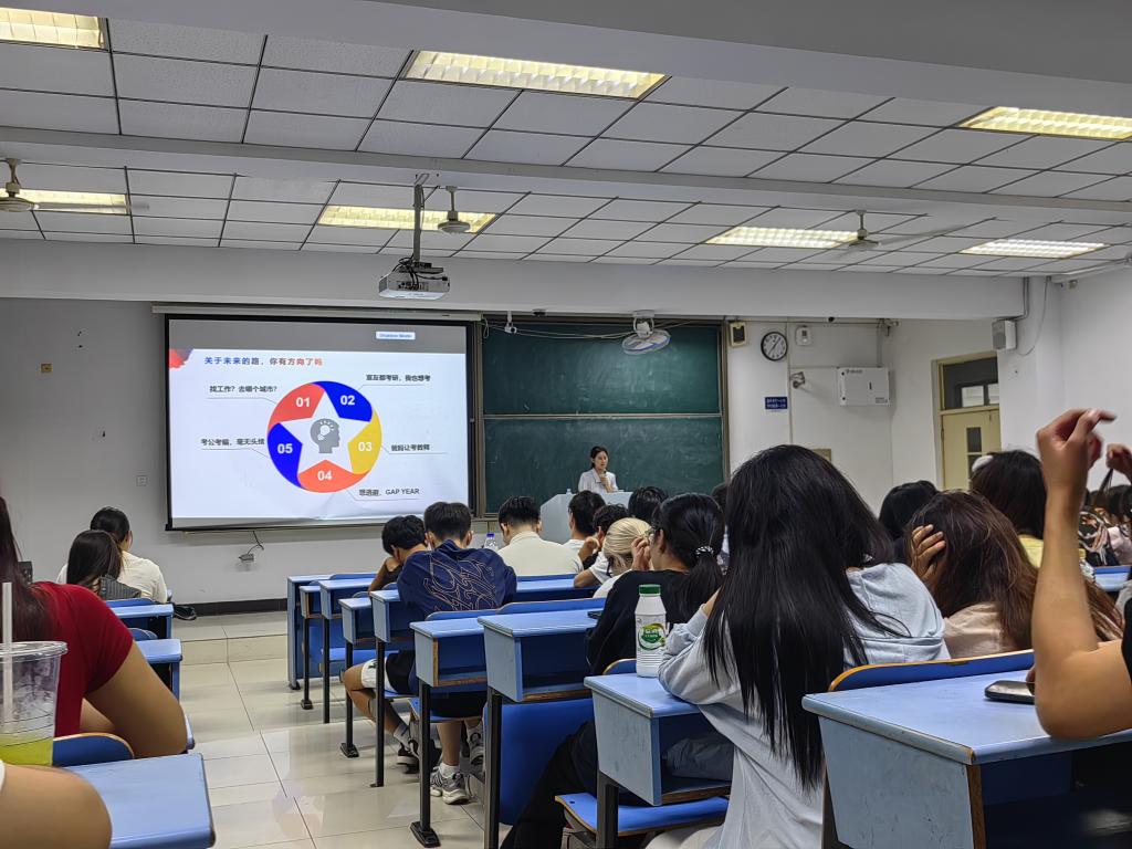 面向2022级毕业生,辅导员秦艳秋重点讲解了当前就业形势与政策支持,鼓励同学们积极把握秋季招聘机遇,树立正确的择业观和就业心态,同时为考研学生提供备考建议,助力学生顺利迈向人生新阶段。