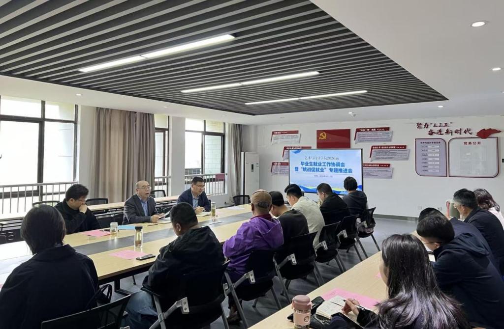 为扎实推进2026届毕业生高质量充分就业,4月15日上午,艺术与设计学院在艺设楼北楼506会议室召开2026届毕业生就业工作协调会暨“统战促就业”专题推进会。学院就业创业工作领导小组全体成员、全体民主党派人士参加会议,会议由学院党委书记徐新卫主持。