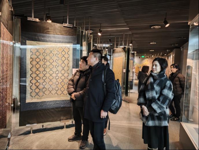 在北京服装学院艺术设计学院,调研团队参观了民族服饰博物馆,重点考察了其在时尚设计领域的特色学科建设路径、国际化合作办学实践以及教学实验室集群的管理运营模式。该院围绕国家与行业需求进行前瞻性学科布局、依托行业资源强化实践教学环节等高质量人才培养的举措,给我院调研人员留下了深刻印象。